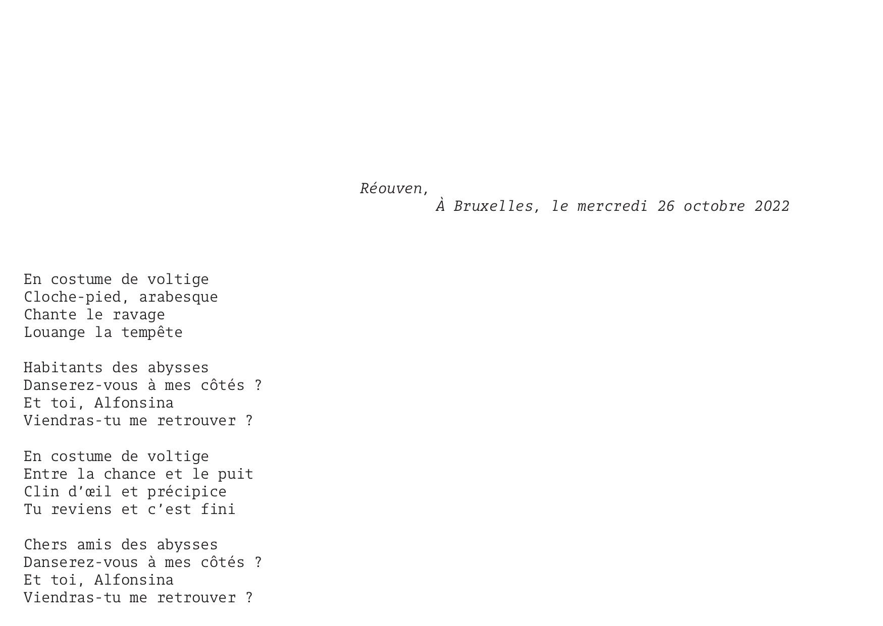 composée de fragments issus d’une conversation épistolaire numérique, débutée à